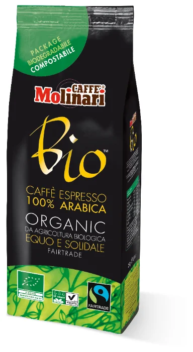 Molinari BIO ARABICA ORGANIC AND FAIRTRADE - фактически один из первых кофе, который сертифицирован как экологически чистый продукт (маркировка Bio). Смесь арабики, собранной с плантаций Центральной и Южной Америки, соответствует всем вкусовым качествам, необходимым для приготовления кофе.